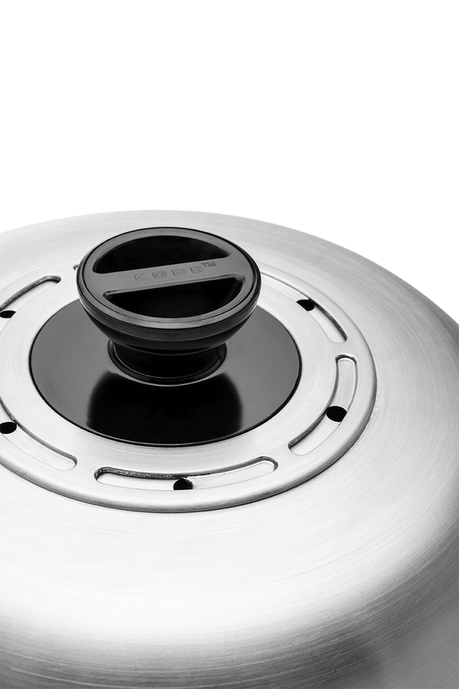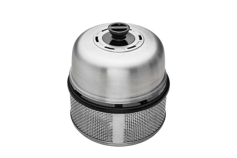 The COBB Premier Air charcoal grill features adjustable air vents on the lid. For achieving high temperatures, open the vents; for lower-temperature cooking and braising, close them. The vents are also useful for smoking fish or meat.