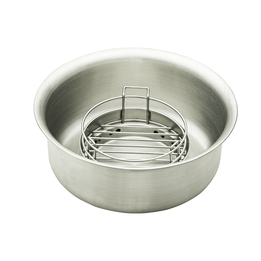 All fats and liquids from the universal plate drain into the lower part (inner container), preventing the charcoal from igniting.